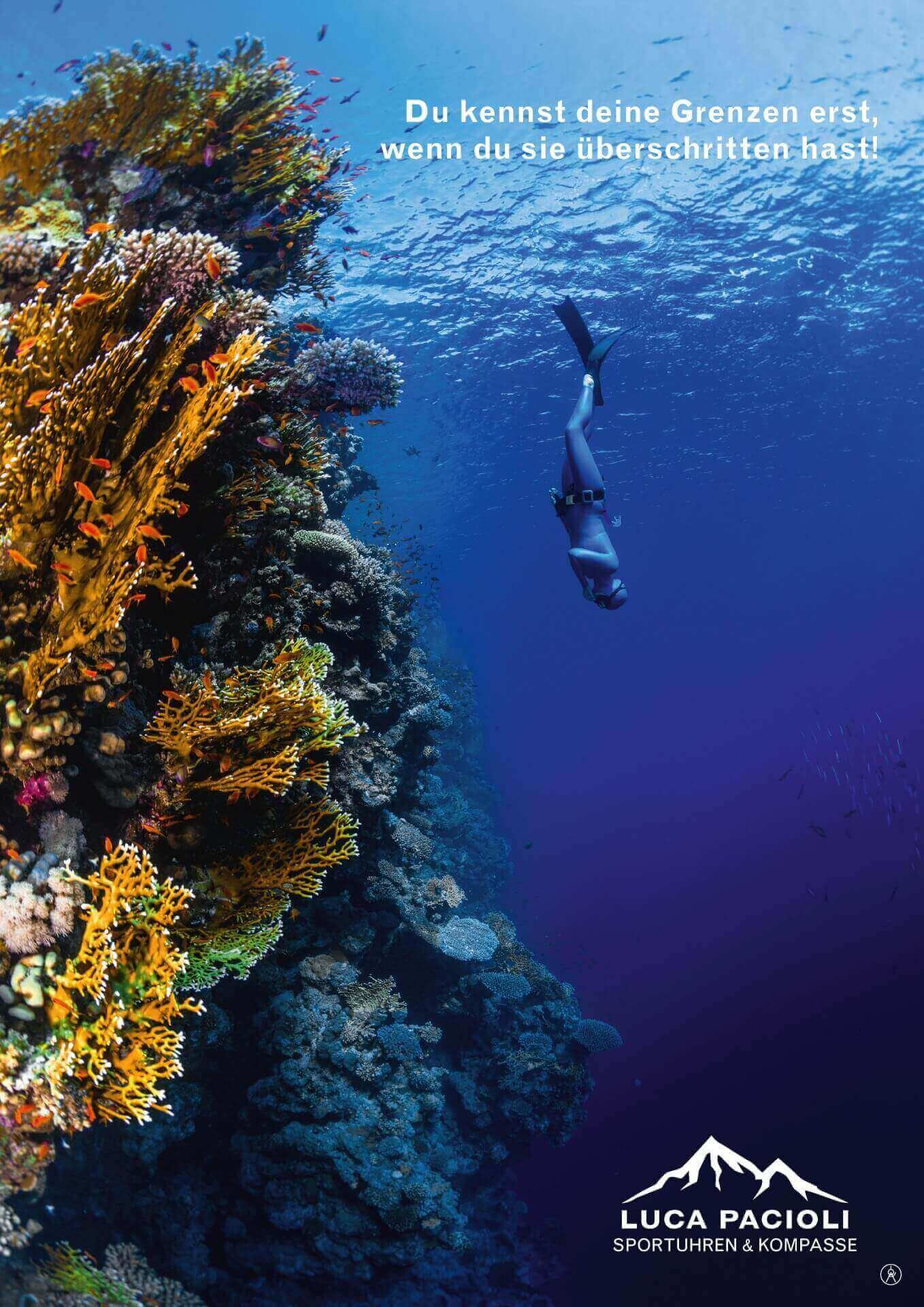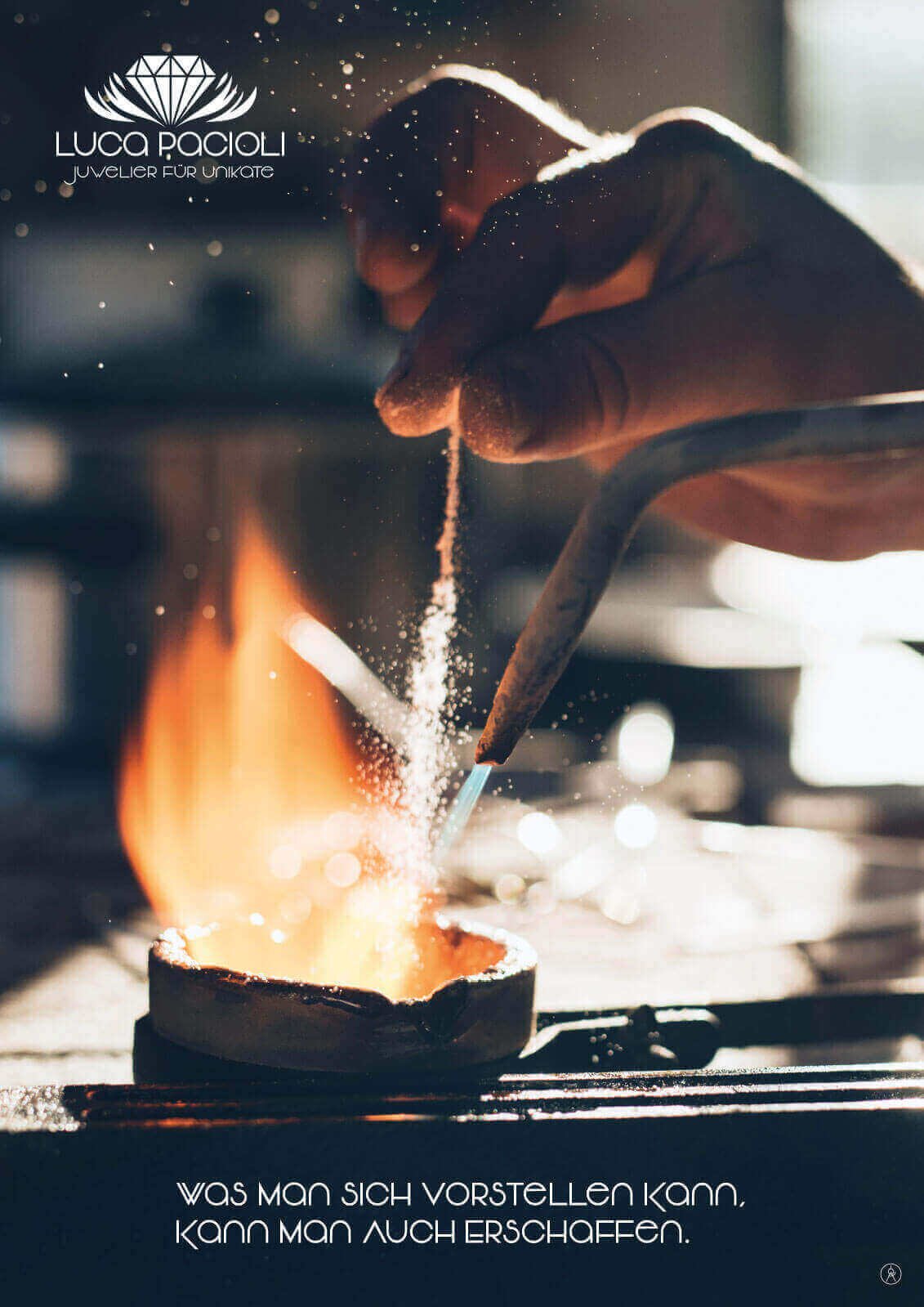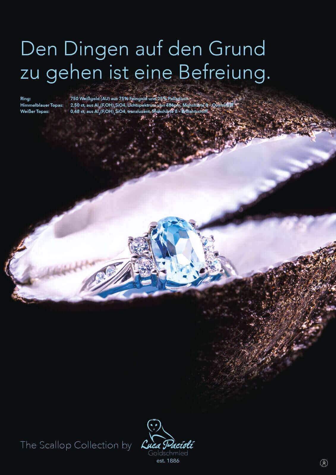 Ansätze: Neugierige und wissbegierige Menschen gehen den Dingen auf den Grund. Weise erforschen, dokumentieren wissenschaftlich und geben es an die Nachwelt weiter. Sie haben einen Blick für das Detail und für Akribie. Diese Imageanzeige mit den Inhaltsstoffen des Schmucks darzustellen, schien uns nur logisch. Wissenschaftler sind oft Zahlenmenschen. Trotzdem weiß jeder Mensch, dass der Spaß beim Autofahren mehr ist, als das Zusammenspiel der Einzelteile. Weise gehen in die Tiefe, somit entschieden wir uns ebenfalls für ein Schmuckstück, das den Tiefen der Meere entspringen könnte.